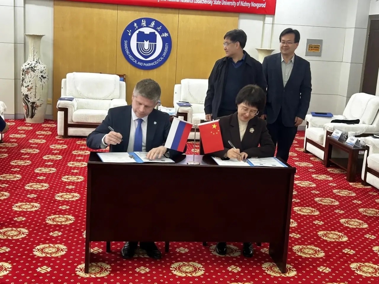 Значимым этапом международного партнёрства стало установление связей с Шаньдунским медико-фармакологическим университетом (бывший Медицинский университет Биньчжоу), который недавно изменил название. Делегация ННГУ посетила учебное заведение первой среди зарубежных представителей после официального изменения наименования вуза.