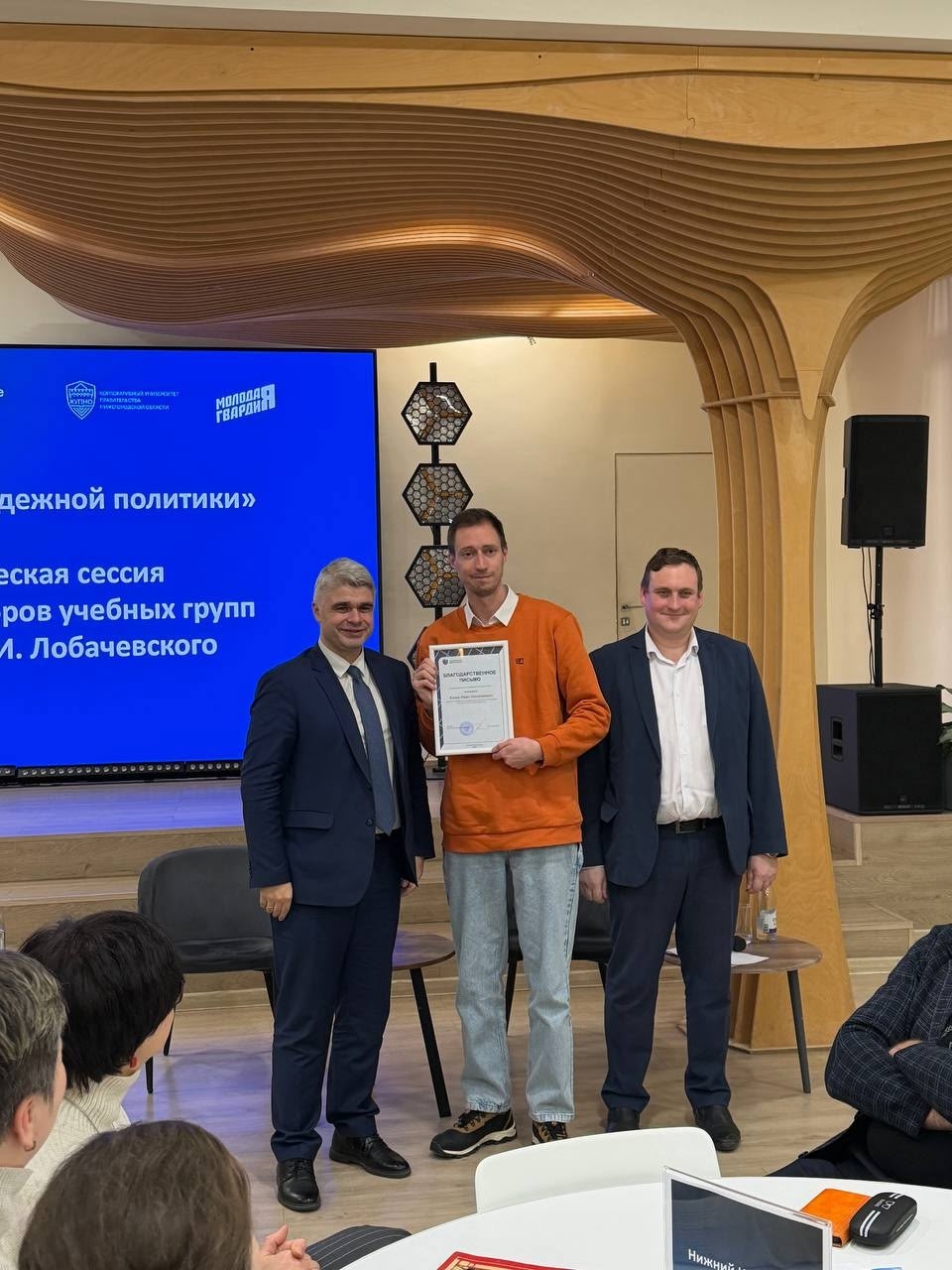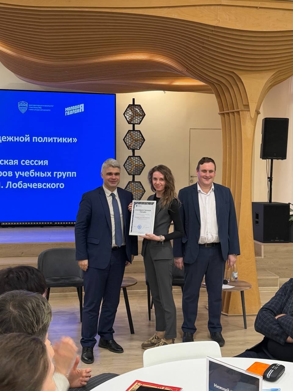 В рамках стратегической сессии активные кураторы ИКМ Исанина Светлана Олеговна и Юнев Иван Николаевич награждены благодарственными письмами ректора ННГУ